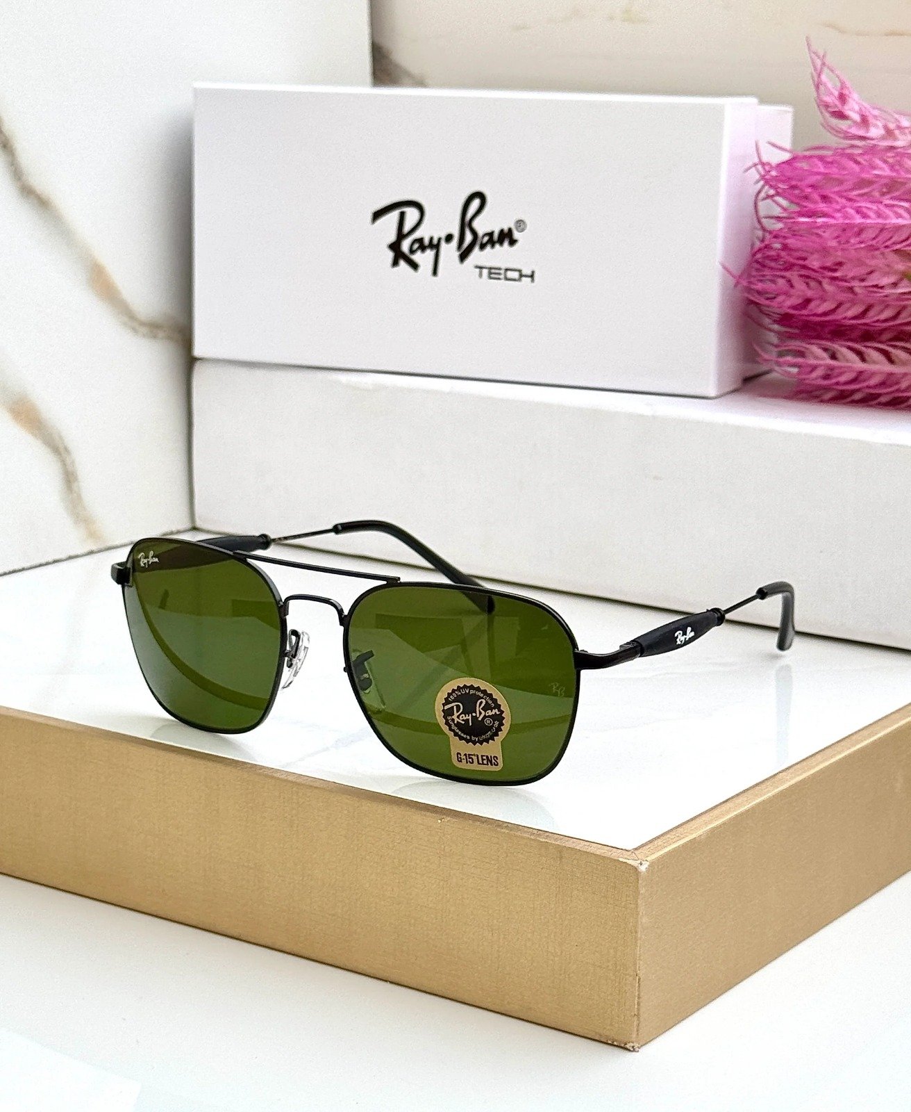 RAY BAN 1208 BLACK GREEN UV-400 SUNGLASSES